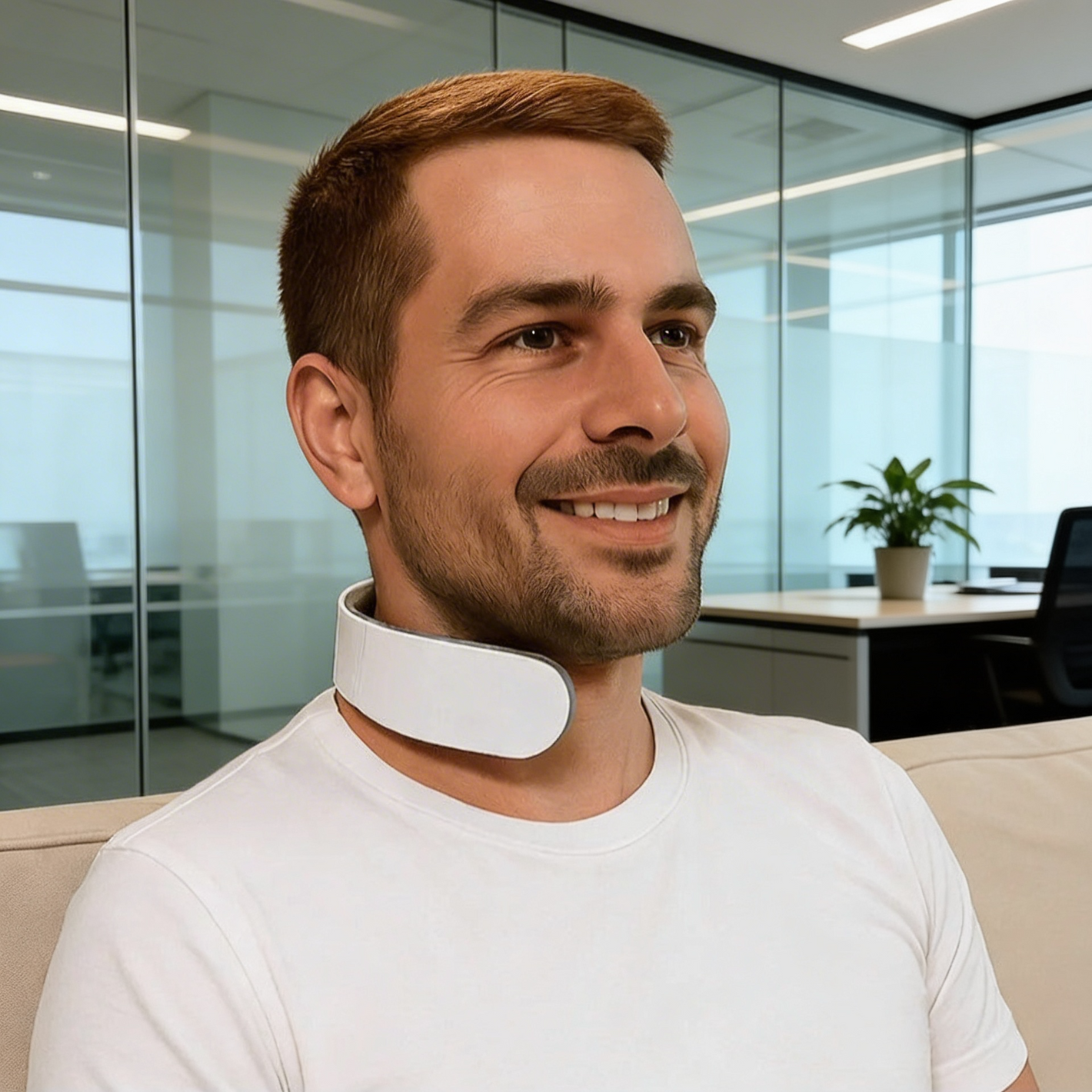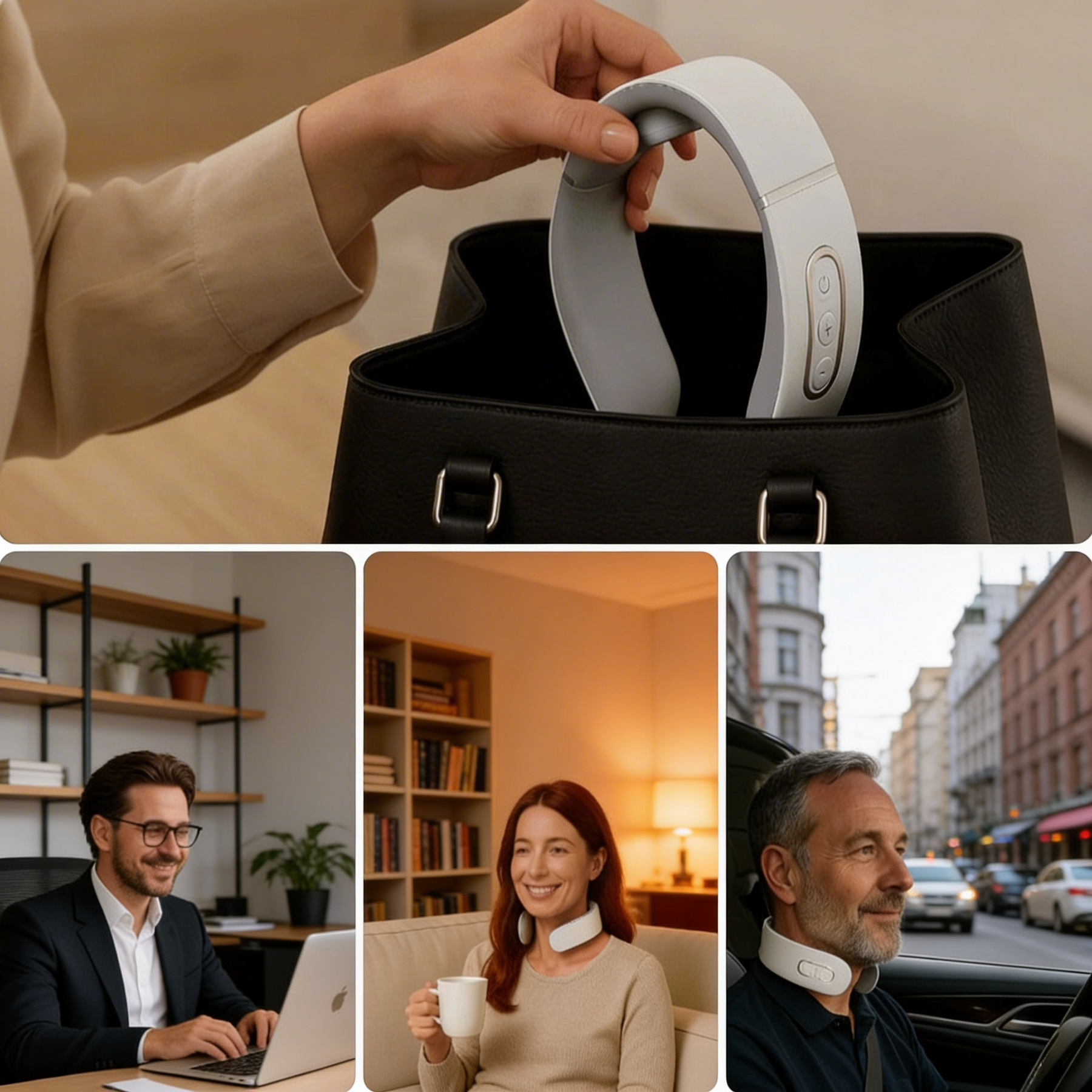 Legen Sie das Gert bequem um Ihren Nacken zuhause, im Bro oder unterwegs.